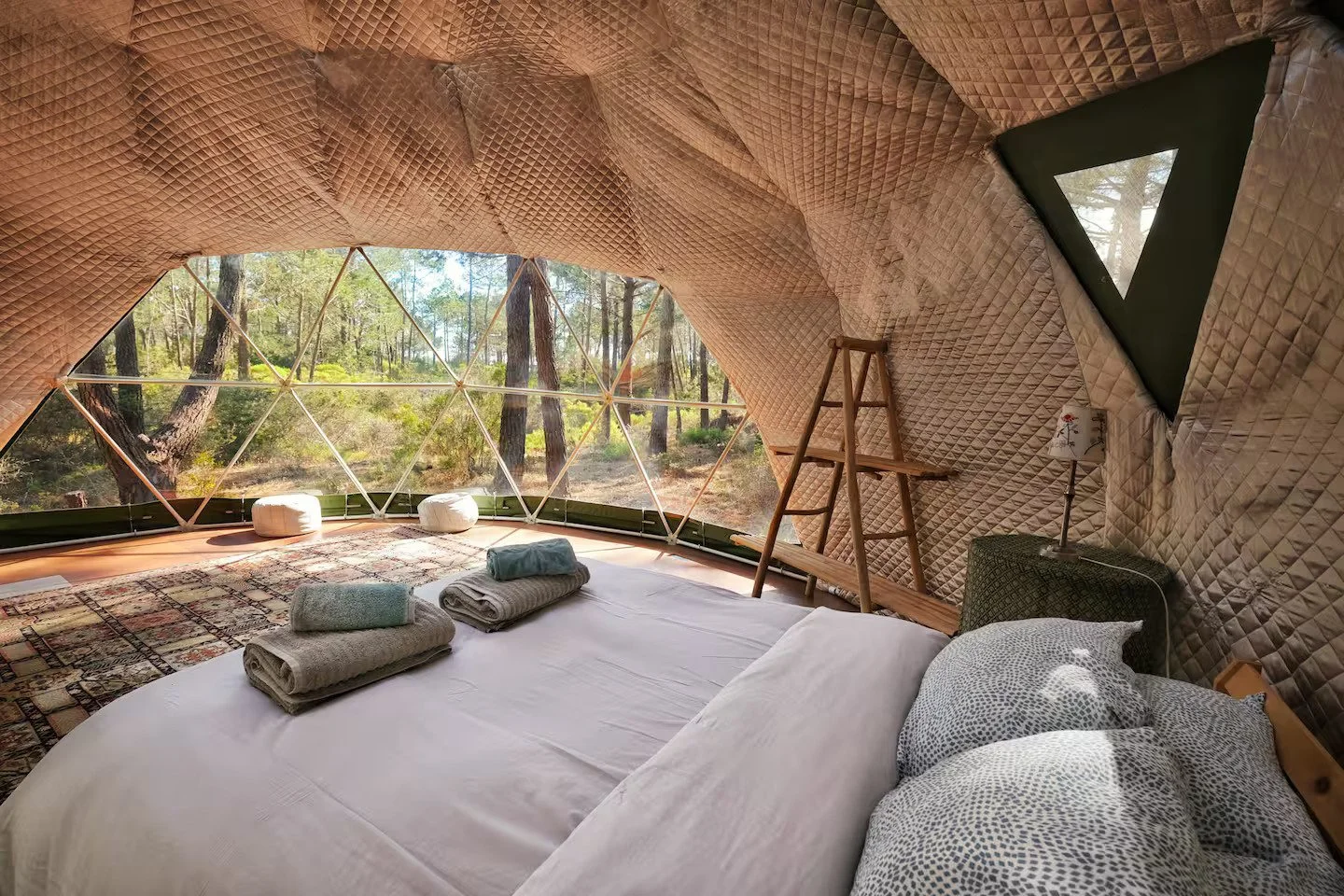 We stay in comfortable domes including showers and compost toilets nestled throughout the forest, offering a quiet place to rest and integrate.